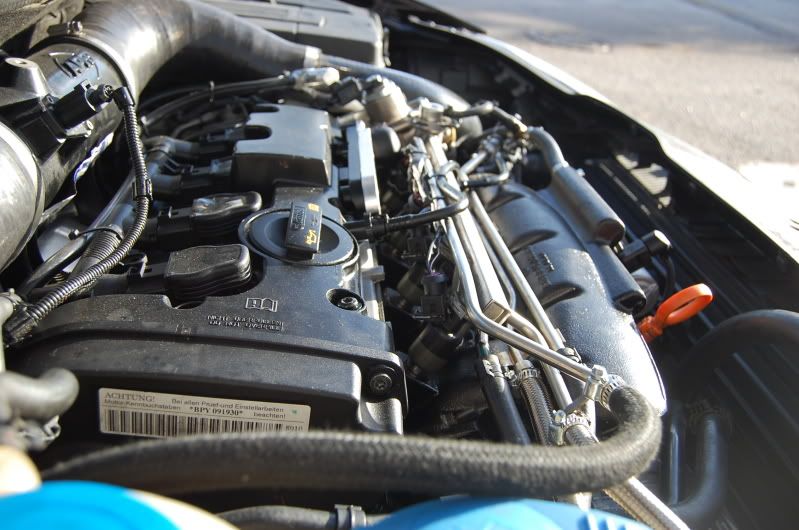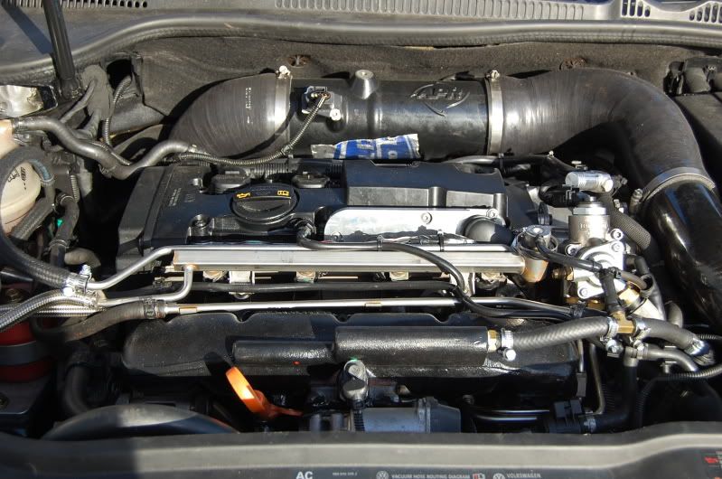 Recently we have had great success running E85 in our shop cars including our 700whp 10 second Porsche 996TT and our 750+whp 8 second Evo8. So, we decided to convert the first FSI to run on E85 ethanol. The advantages of running ethanol over traditional fuel are extensive and include a cleaner and cooler burn in the combustion chamber which translates to the ability to run high compression, high boost, and lots of ignition timing... a recipe for lots of horsepower. Not to mention $1.69 a gallon, that harnesses more power then race fuels available for $25+ a gallon. Preliminary tuning is being carried out as we speak (Thanks [email protected]), and dyno numbers will be available within the next week. New modifications performed to support ethanol include: a cast aluminum intake manifold incorporating (4) 1000cc fuel injectors, injectors are controlled via a 034 motorsports ecu (thanks [email protected]), (2) Bosch Motorsports fuel pumps, and a custom fuel surge tank which incorporates the pumps mounting brackets.